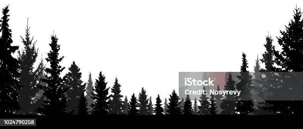 Forest Evergreen Coniferous Trees Silhouette Vector Background